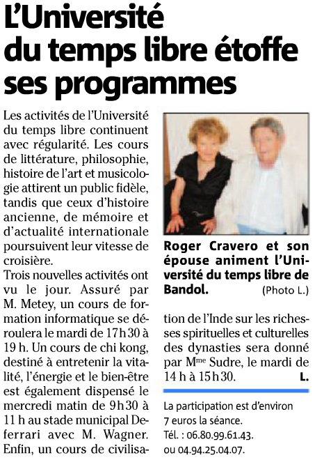 Merci au quotidien régional qui se fait l’écho de l’évolution des programmes de notre Université du Temps Libre.