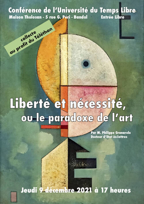 L’art manifeste-t-il la capacité de l’homme à rompre avec la nature ? Ou bien est-il, comme le pensaient les Grecs et par exemple Aristote, un prolongement de la nature ? Ces deux hypothèses ont traversé toute l’histoire des idées. Au XIXe siècle, Friedrich Nietzsche considère que l’aptitude créatrice des humains, qu’il baptise du nom de Phantasie (« fantaisie », « imagination »), loin d’être le propre de l’homme, est l’activité essentielle de tous les êtres vivants. Nietzsche nous place ainsi devant un étonnant paradoxe. D’un côté il use d’un terme qui semble faire signe vers le libre-arbitre, et qui semble même renvoyer à l’idée d’une liberté « capricieuse ». Mais d’un autre côté, en étendant cette capacité à l’ensemble du biologique, il l’enracine dans la nécessité qui règle les processus de la nature. Comment sortir de ce paradoxe ? C’est ce à quoi nous allons œuvrer avec cet exposé, qui prendra appui sur les écrits de Nietzsche ainsi que sur l’ouvrage majeur du peintre Kandinsky, Du spirituel dans l’art.