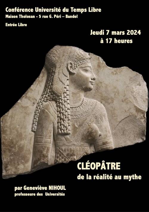 Nous expliquerons ce qu’était l’Égypte des Ptolémées au sein de laquelle naquit Cléopâtre, les intrigues familiales et les difficultés qu’elle rencontra pour survivre puis obtenir le pouvoir. Nous montrerons la volonté qu’elle dut déployer face aux différentes vagues de tentatives d’invasion des Romains et terminerons par les derniers essais de fondation d’un empire couvrant tout l’orient de la Méditerranée.