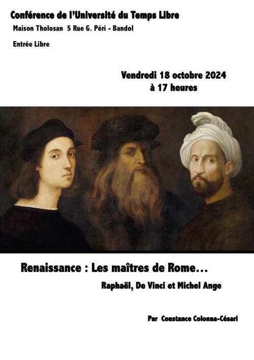 La conférence proposée abordera le contexte des années 1513, période à partir de laquelle les trois grands maîtres vont se trouver réunis à Rome quelques mois. Leur présence conjointe couronne une forme d’apogée artistique : l’âge d’or romain de la Haute Renaissance.